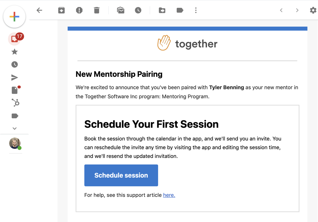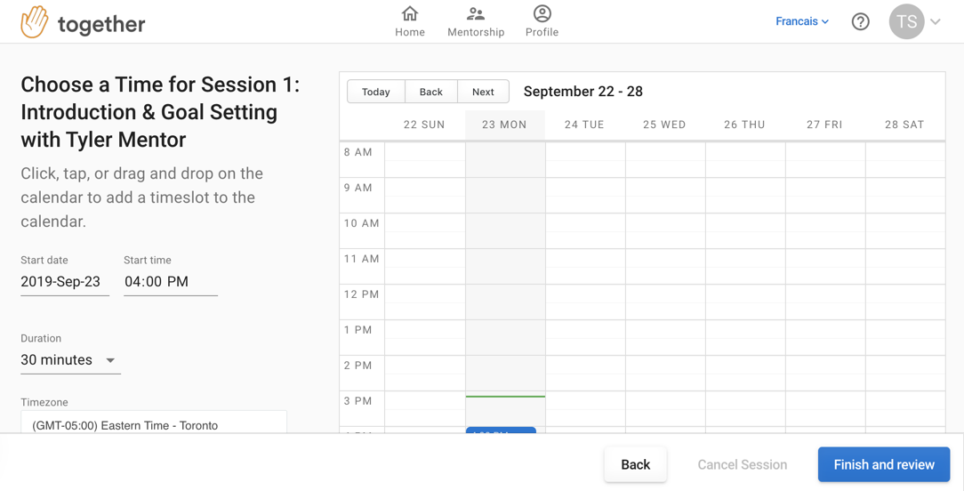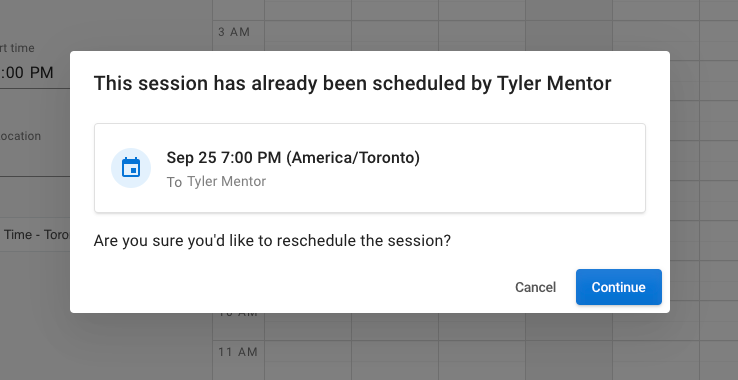 If your mentorship partner has already scheduled the session, you'll be prompted with the following message.